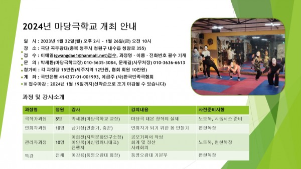 문의 : 박세환(마당극학교장) 010-5635-3084, 문재길(사무처장) 010-3636-6613